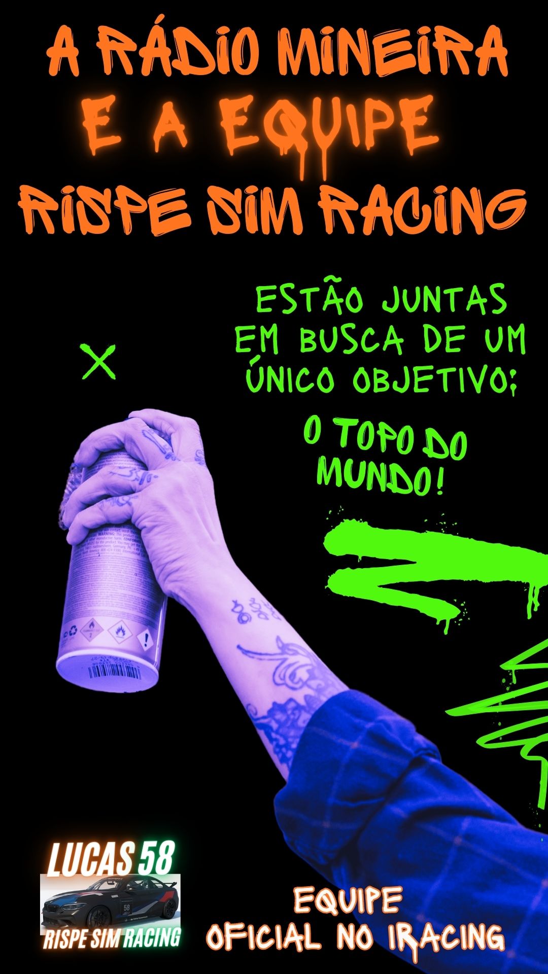 Mais do que resultados, o objetivo é representar com as marcas parceiras Rádio Mineira Rispe Sim Racing e a comunidade que apoia o projeto. Cada corrida será uma bandeira levantada em nome da cidade, do estado e do país. E, como em qualquer esporte, o apoio da torcida é fundamental.